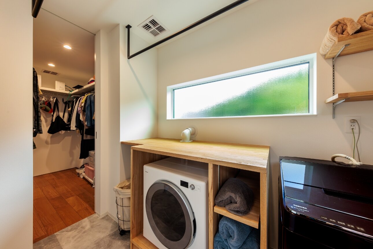 雨に濡れないビルトインガレージや、子供たちと一緒に料理が出来る広々キッチン、洗濯・収納・料理がスムーズに完結する動線は、奥さまの当初からのご希望でした。