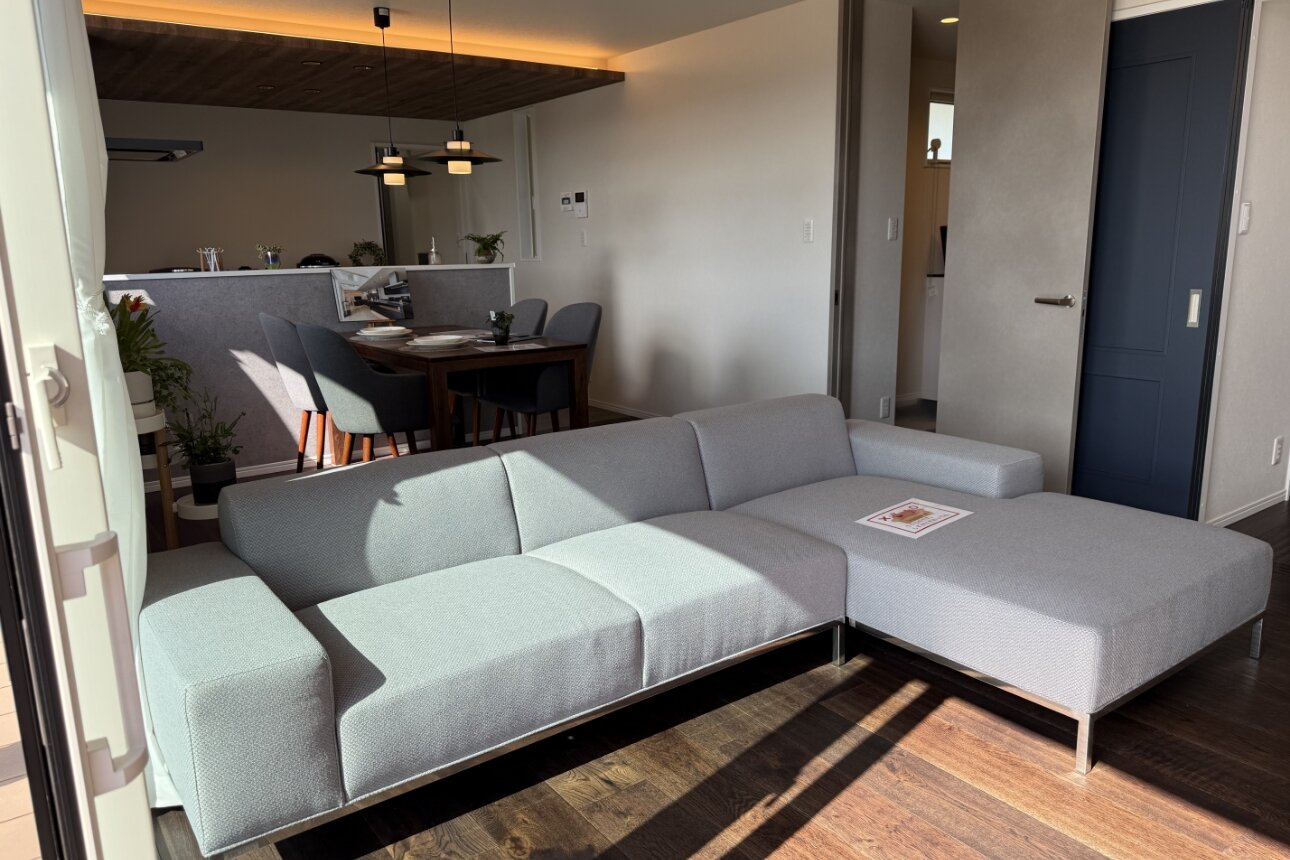 このリビングで過ごすと、自然に手足が伸び、リラックスできます。休日はこのリビングでゆっくりと過ごしてほしいと考えました。