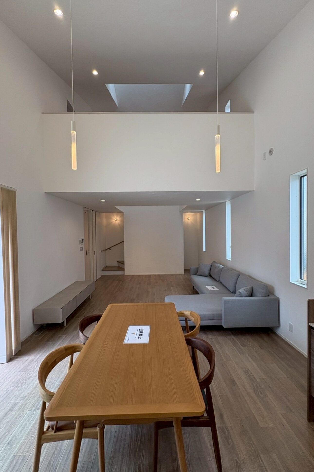 ペンダント照明は、空間の余白を感じさせ勾配天井は舞台から続く物語のように全体に広がる世界観を創り出しています。